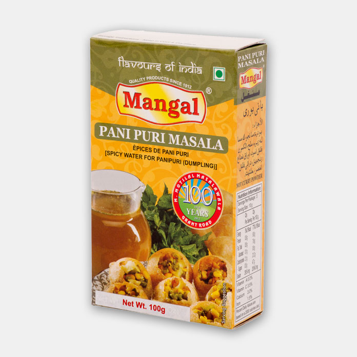Add Required Quantity Of Mangal Panipuri Masala In Cold Water. Add Green Leaves And Chopped Mint Leaves ( Optional), Serve Puris Filled With Spiced Liquid, Cooked Sprouted Moong, Boiled Potato, Date & Tamarind Chutney.